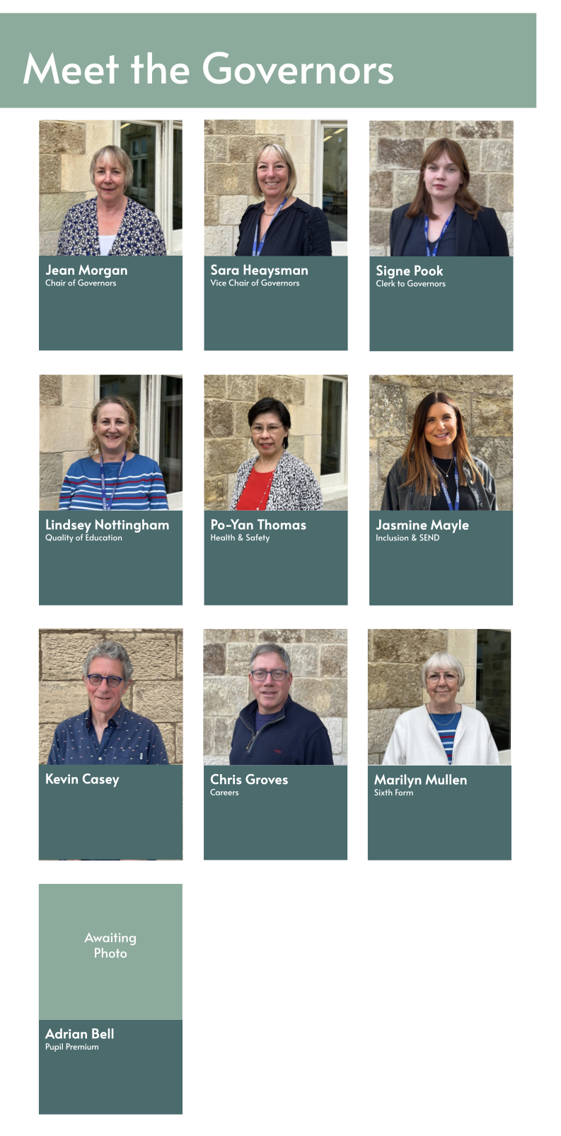 Our Governors aim to work in conjunction with parents/carers, staff and other stakeholders of the school to exercise a local form of governance that is responsive and reflects the voice of the community we serve. The Local Governing Body is a team of people who work closely with the Headteacher and the Senior Leadership Team to make key decisions to enable the successful running of the school and ensure that it delivers high-quality education.